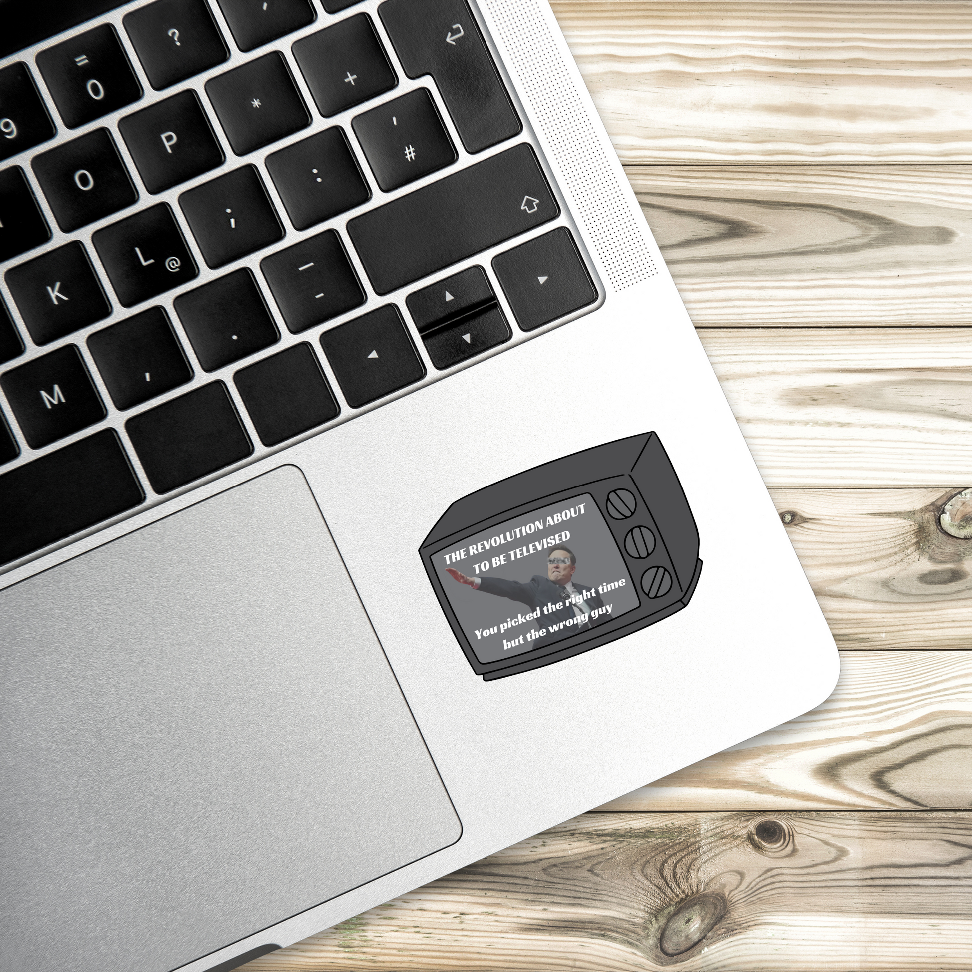 History is unfolding before our eyes. "The Revolution About to Be Televised – You Picked the Right Time But the Wrong Guy" is a bold sticker featuring a TV screen with Elon Musk, inspired by Kendrick Lamar’s electrifying Super Bowl performance. A statement on resistance, political awareness, and choosing the right side of history.