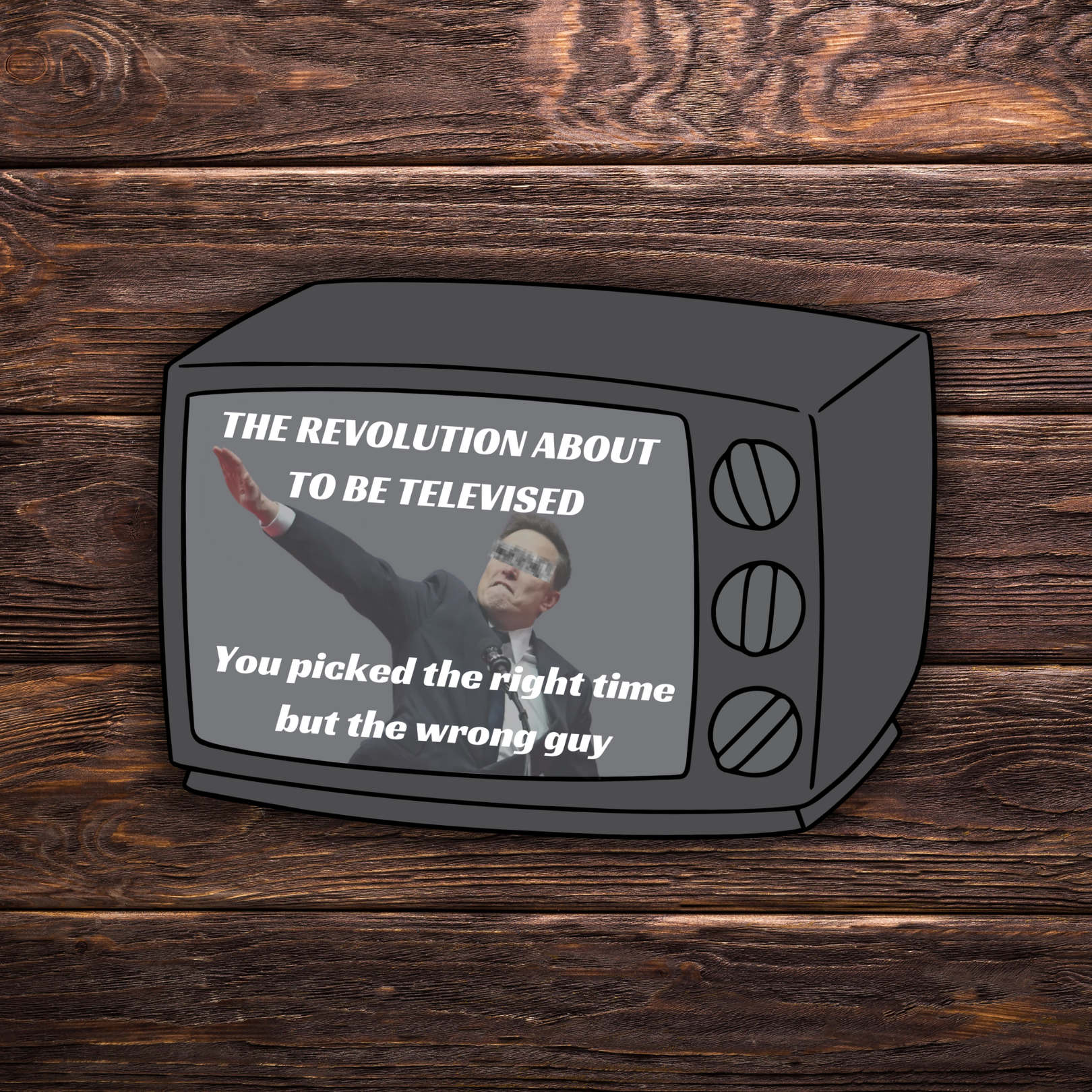 The Revolution About to Be Televised - Elon Musk Salute | 3" x 2.5" | Political Sticker | Vinyl Sticker | Water Resistant | Anti Trump | Meme Sticker | Kendrick