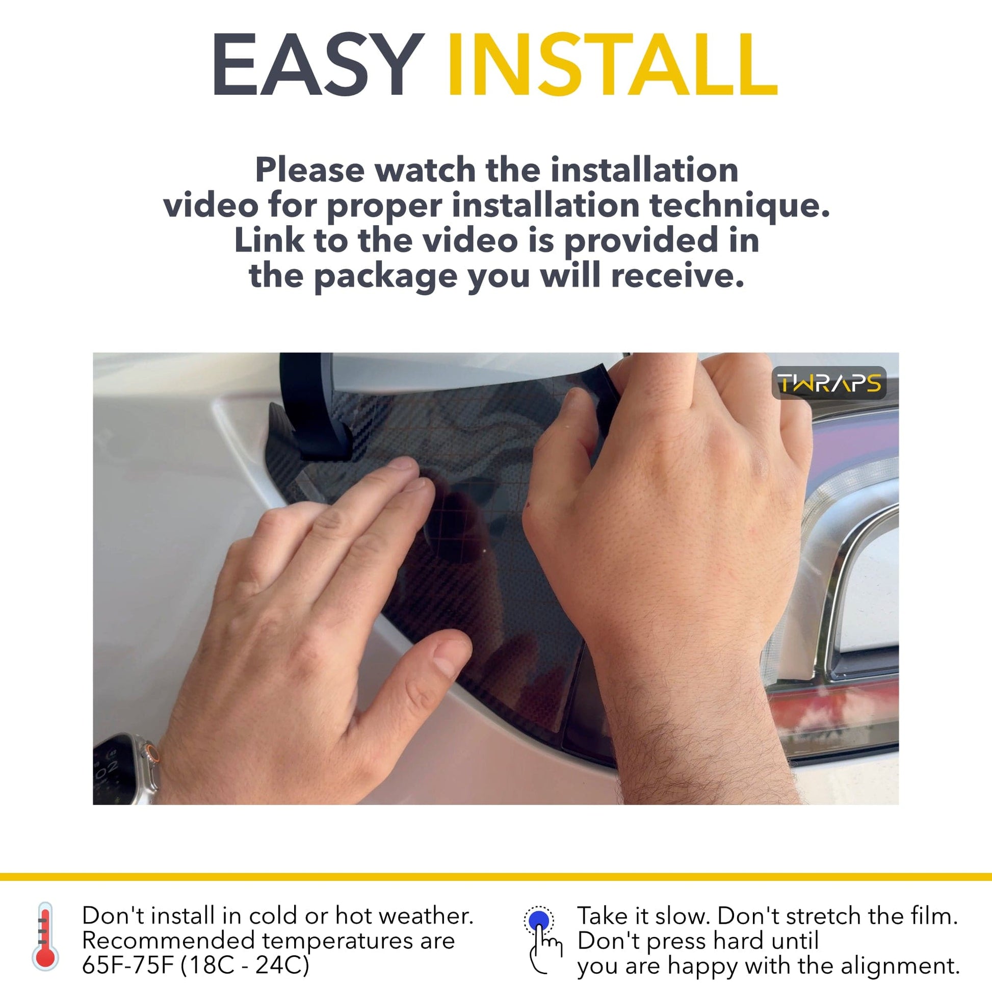 Introducing the TWRAPS Charge Port Carbon Fiber Vinyl Wrap for Tesla Model 3 Highland & Model Y Juniper. Designed to elevate your vehicle's appearance, the subtle carbon fiber pattern adds dimension without overpowering. With a hassle-free installation process taking just 10 minutes, it's a convenient way to upgrade your vehicle's appearance. Proudly made in the USA, our precision-cut film ensures a sleek OEM look for your new Model 3.