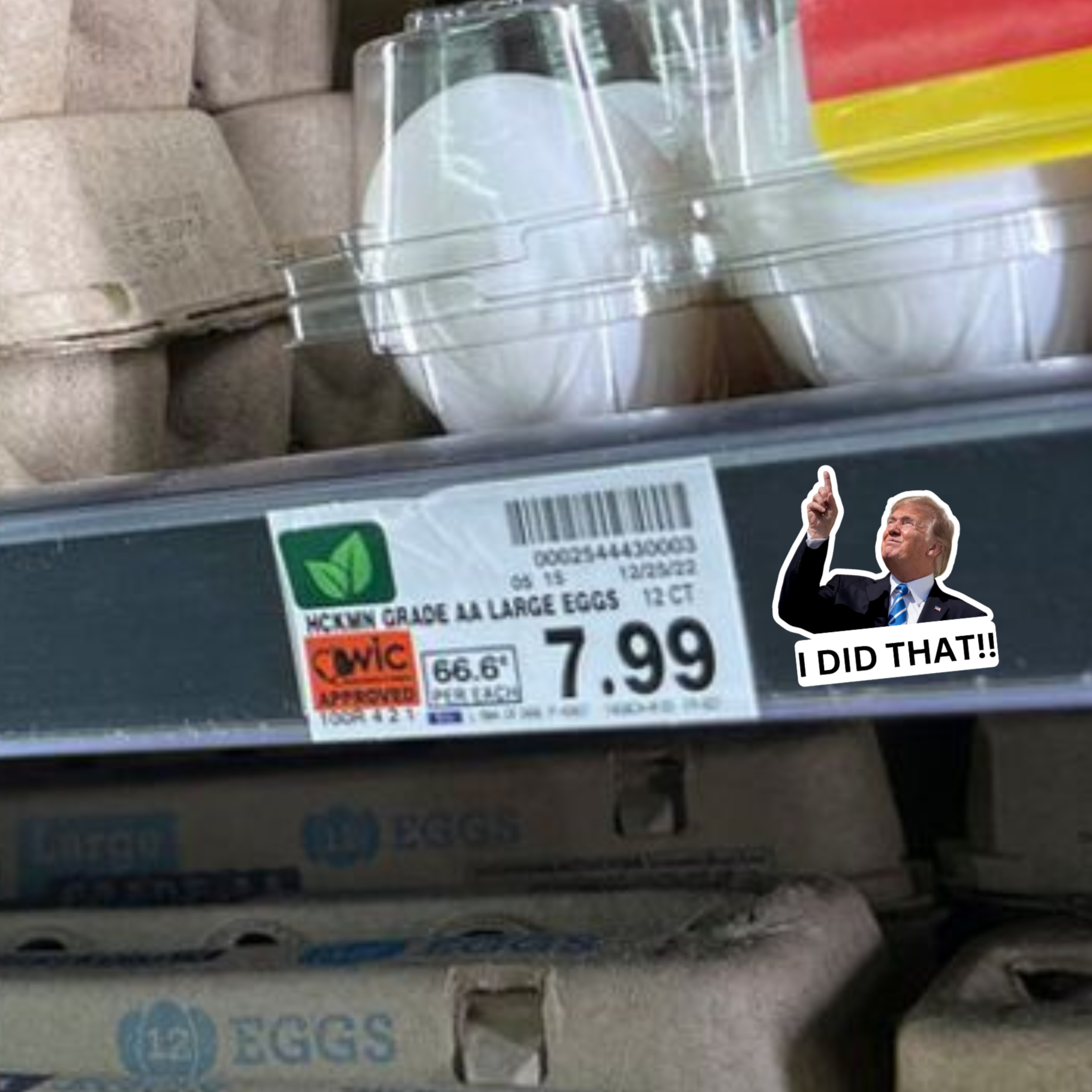 Make a bold statement with this Donald Trump ‘I Did That’ sticker, featuring Trump pointing with the text “I Did That!!” underneath. This hilarious sticker is perfect for gas pumps, grocery store shelves, or anywhere you want to call attention to high prices caused by tariffs. Whether you want to buy in bulk or just mark your favorite screw-up, this sticker has you covered!