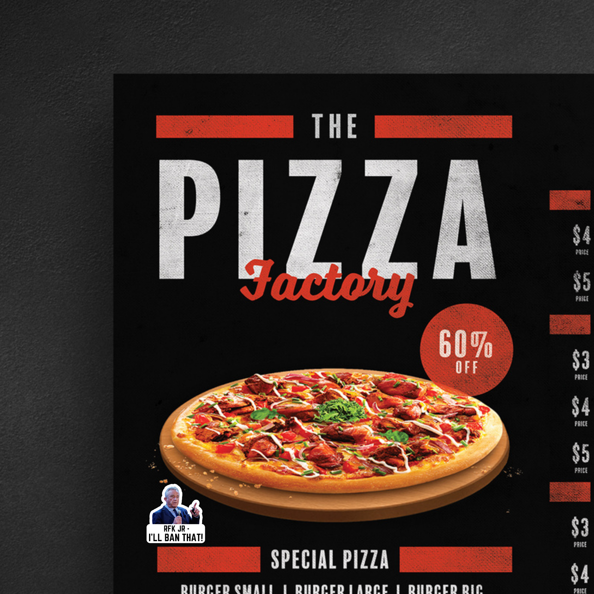 This sticker features RFK Jr pointing with the text “I’ll Ban That!” underneath. Perfect for vending machines, grocery shelves, your local pharmacy or anywhere you want to poke fun at his insane policy stances like banning Doritos and vaccines. Whether you want to buy in bulk or just mark your favorite over-the-top promise, this sticker has you covered!